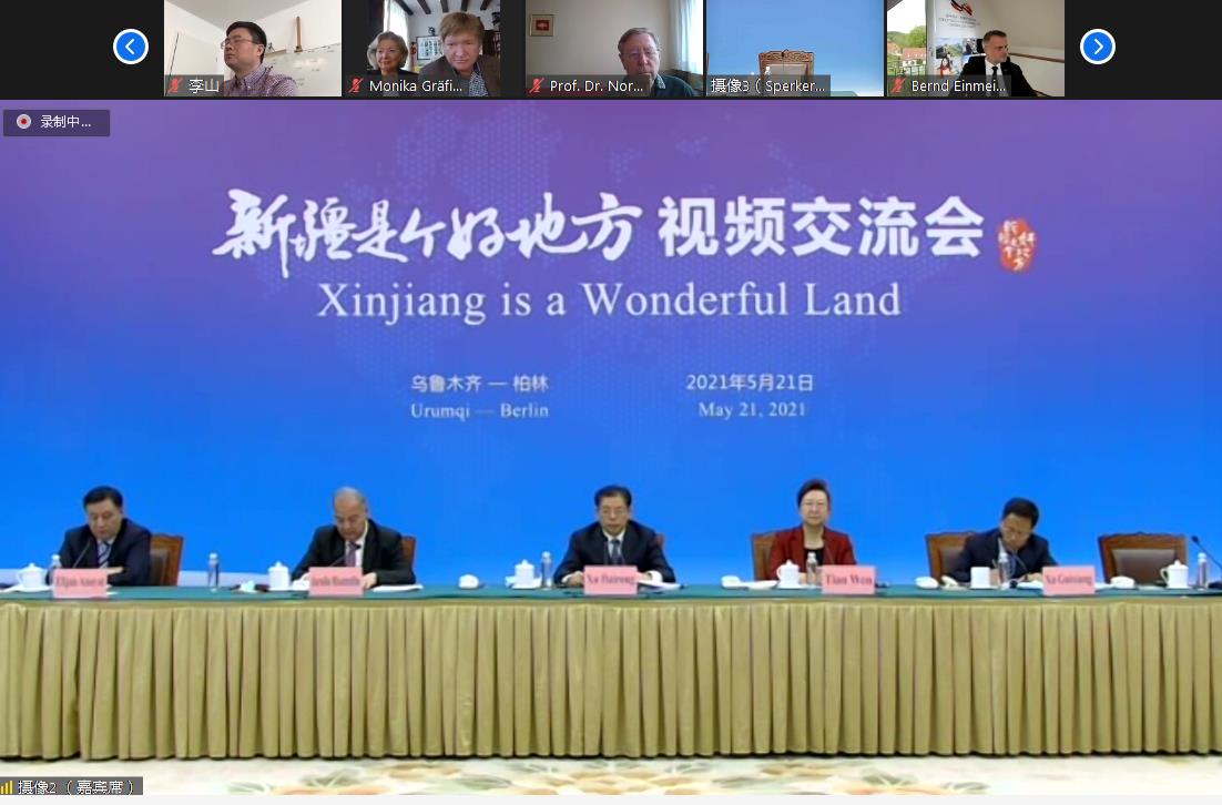 5月21日,中国驻德国使馆与新疆维吾尔自治区政府共同举办“新疆是个好地方”视频交流会。驻德国大使吴恳和自治区党委常委、乌鲁木齐市委书记徐海荣、自治区党委常委、宣传部部长田文、自治区人民政府副主席吉尔拉·依沙木丁出席。来自德政党、议会、工商、文教等各界人士及《南德报》、《人民日报》、新华社、中央广播电视总台、《经济日报》、《科技日报》、中新社、《欧洲时报》等多家中外媒体应邀参加。