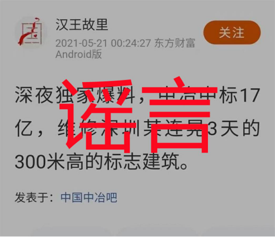 ·网传中国一冶中标17亿维修深圳赛格大厦?官方辟谣。
