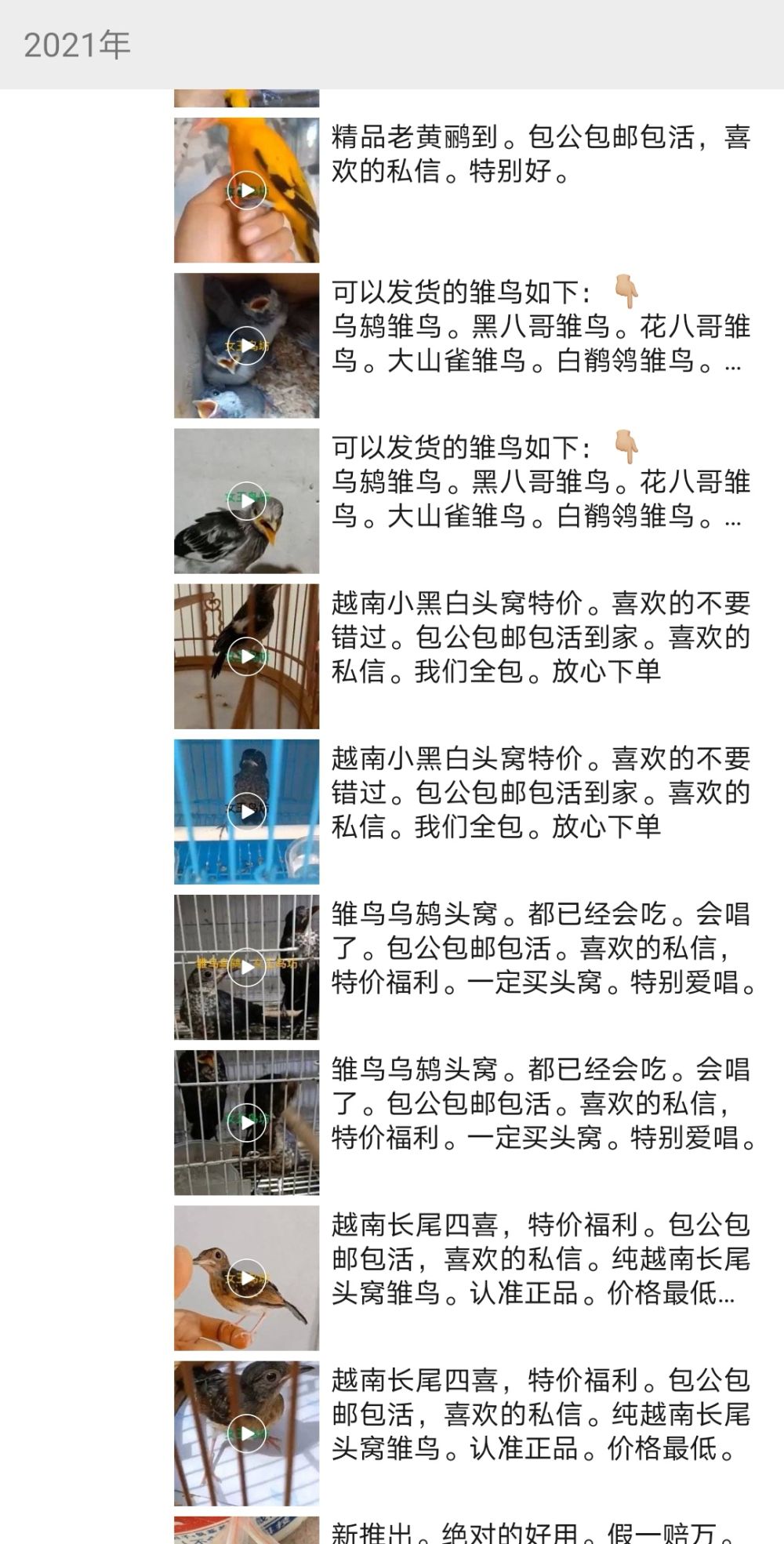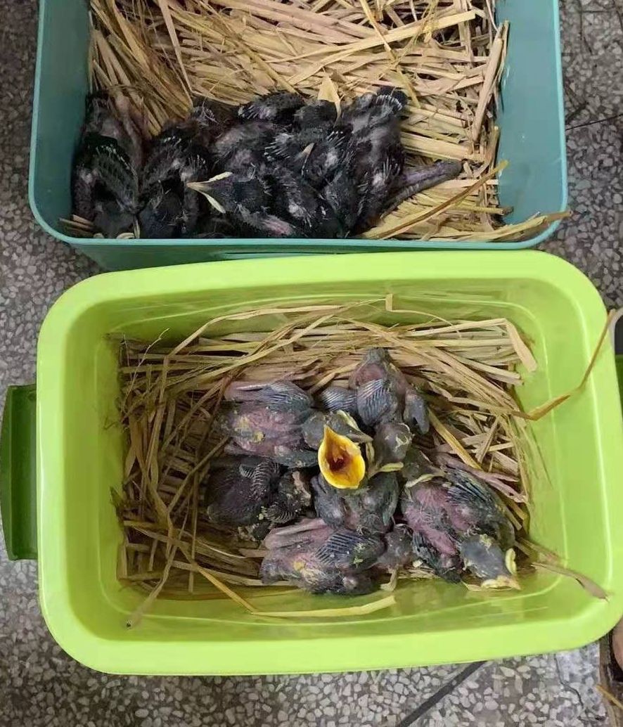 每年的3至5月,是很多野生鸟类孵化的季节。一些所谓的“玩家”已不满足于养成年鸟,而是更愿意从雏鸟开始饲养。记者在一些群组里发现,很多卖家除了发送已经捕获的各类雏鸟的照片、视频,还会发出自己在野外掏鸟窝的视频,并以此炫耀。