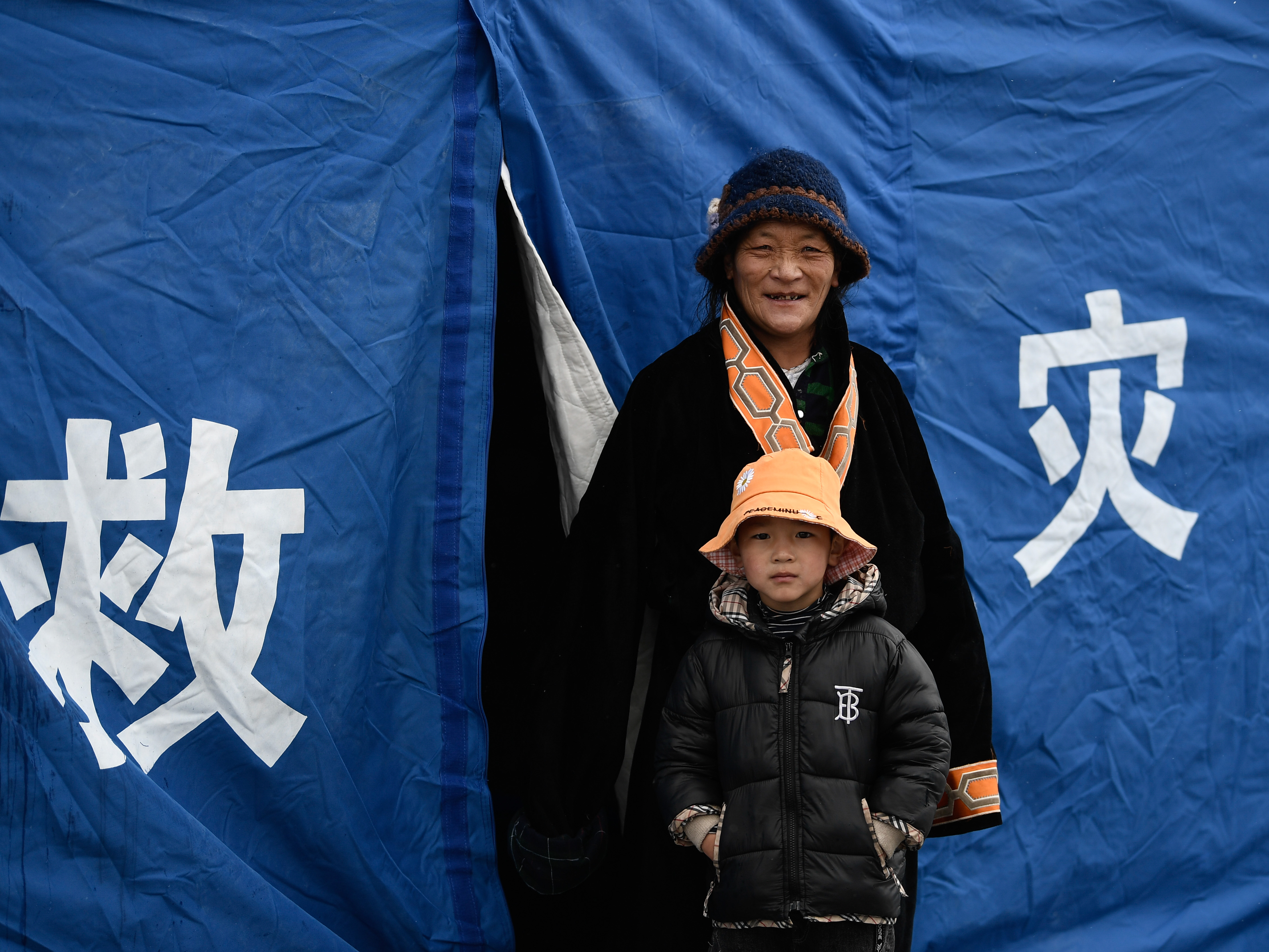 5月22日,两位当地受灾群众在搭建的救灾帐篷前