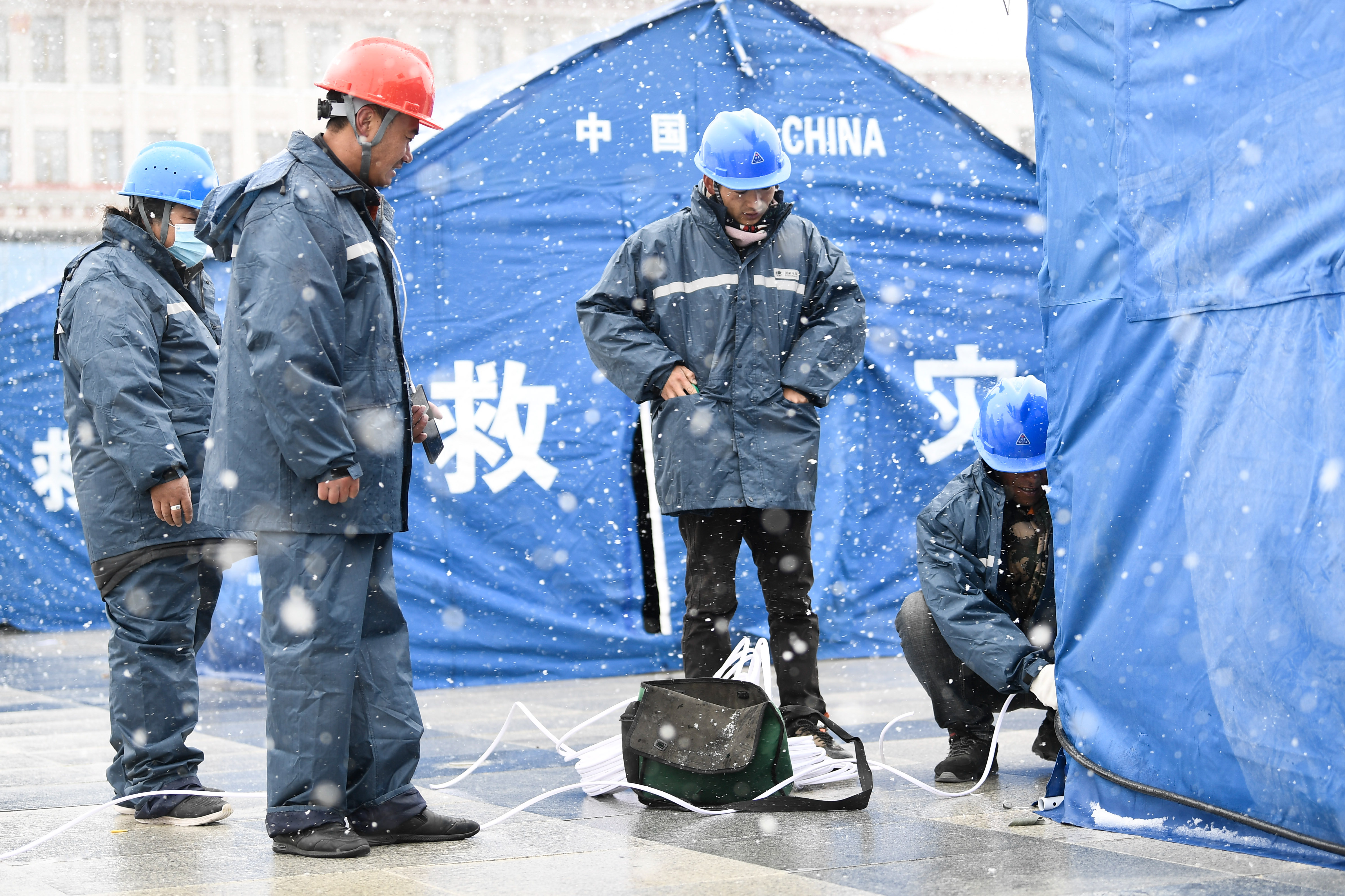 据悉,先期到达的救援队伍共7车45人,来自果洛州消防救援支队地震救援轻型救援队。根据指挥部要求和灾情需要,救援队伍分7个组展开救援。其中,一组前往花石峡镇扎地村救援;三组共15人前往县城小区入户排查,共排查750余户,疏散2000多人;一组前往黄河乡开展灾情排查;一组前往东格措纳湖水库查看有无溃坝情况;一组留守待命。目前玛多县城温度为2℃,海拔4350米,普降中雪。