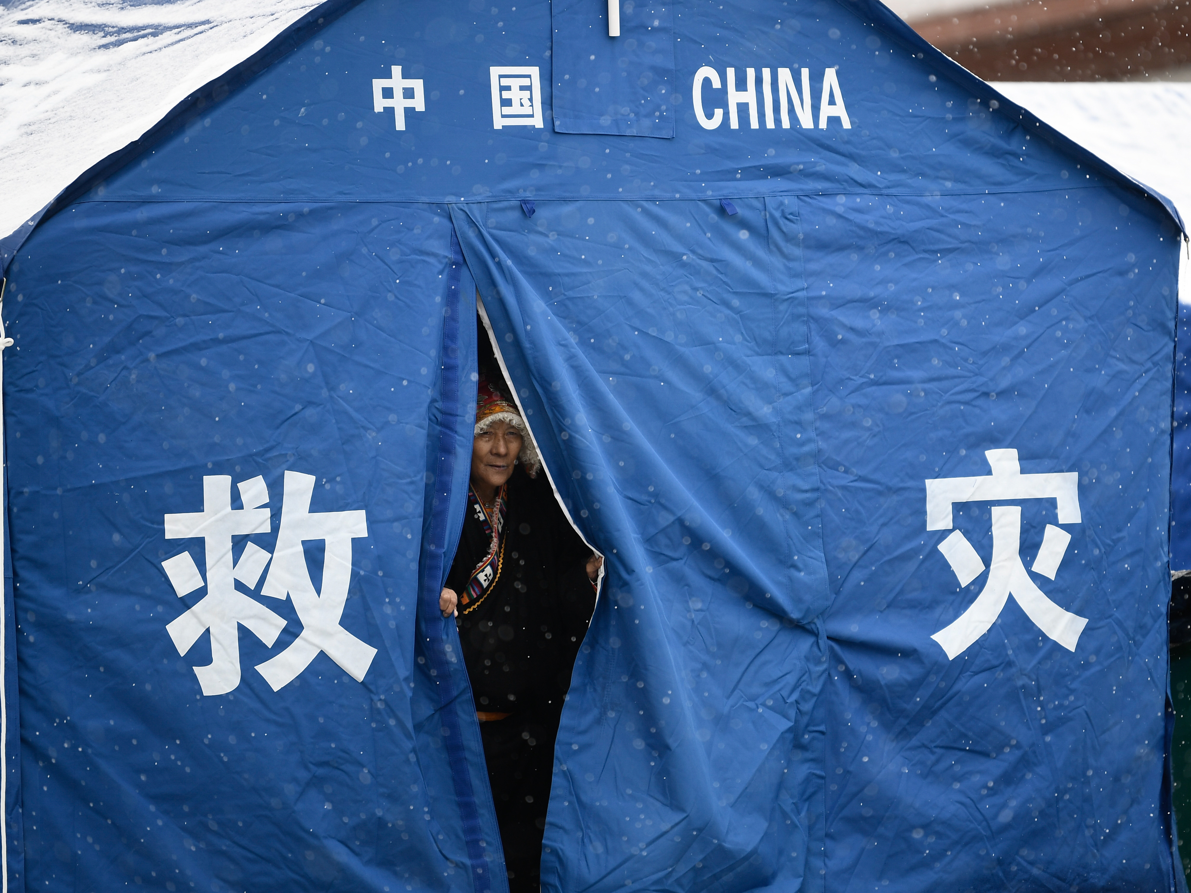 5月22日,当地受灾牧民在搭建的救灾帐篷里
