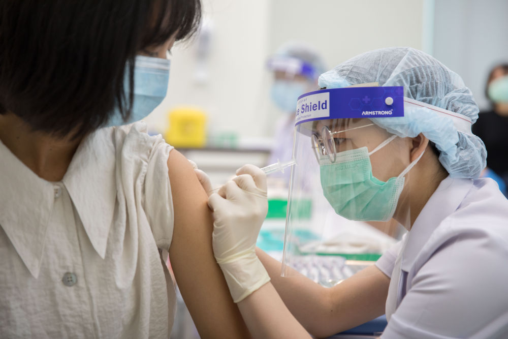 5月20日,医务人员在泰国曼谷邦叻区疫苗接种中心为中国公民接种疫苗。(新华社记者张可任摄)