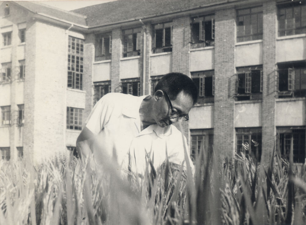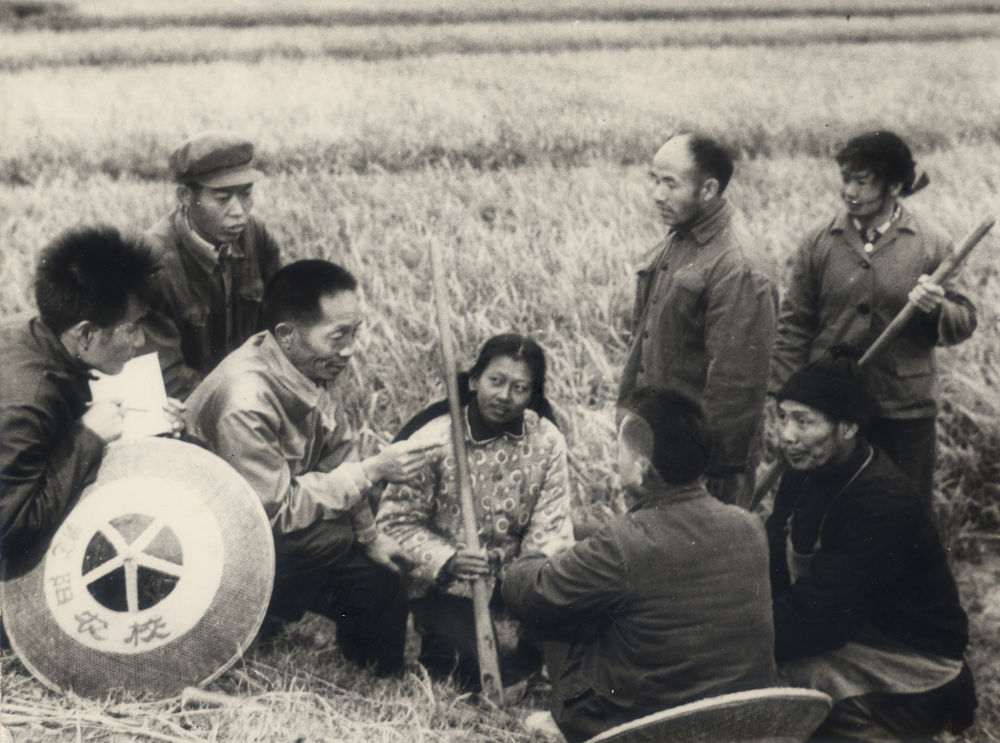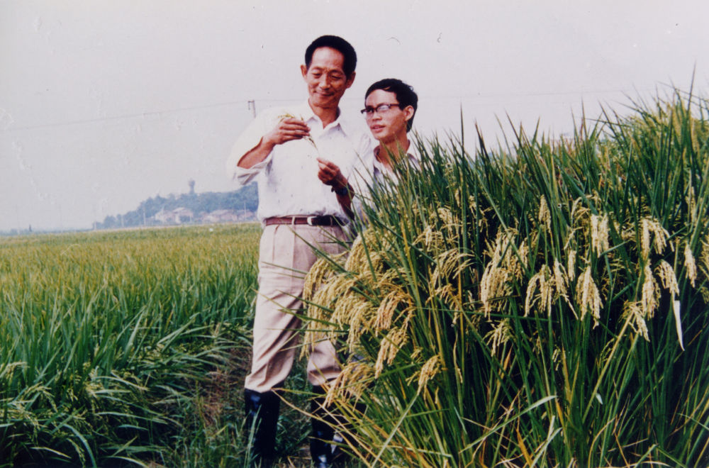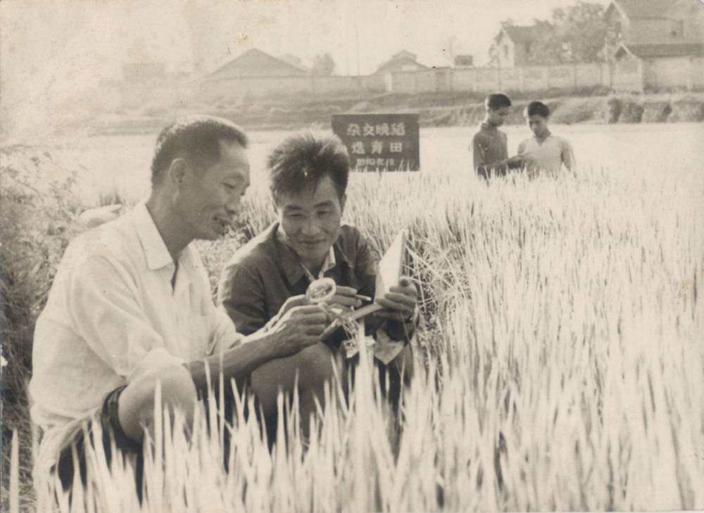 早期研究时期,袁隆平与助手李必湖(左二)在安江农校试验田