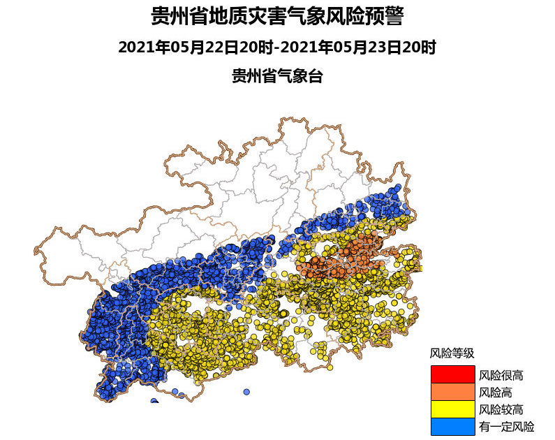 5月22日贵州省自然资源厅、贵州省气象局联合发布地质灾害气象风险预警预报,预计5月22日夜间至5月23日白天,贵州省镇远、三穗、剑河、雷山、天柱、锦屏地质灾害气象风险高(橙色预警);六枝、镇宁、关岭、紫云、松桃、印江、石阡、玉屏、碧江、万山、江口、岑巩、施秉、麻江、丹寨、台江、黎平、凯里、榕江、从江、罗甸、都匀、三都、荔波、普安、晴隆、望谟、册亨地质灾害气象风险较高(黄色预警)。贵州省自然资源及气象部门提醒相关部门及公众注意防范。(总台央视记者 杨晓东)