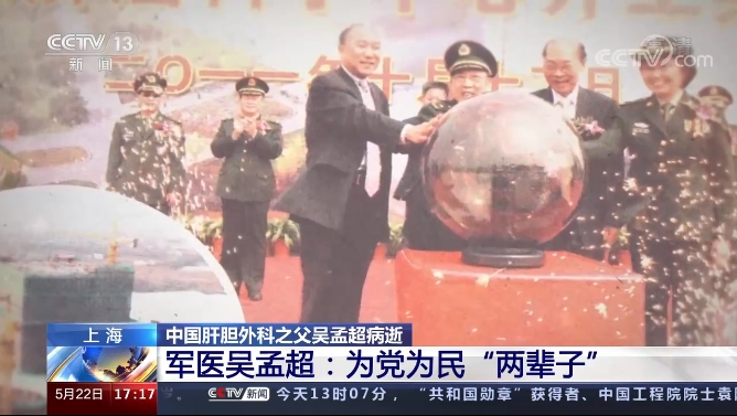 中国共产党优秀党员,中国科学院院士,国家最高科学技术奖获得者,原第二军医大学副校长吴孟超同志,因病医治无效,于今日(2021年5月22日)13时02分在上海逝世,享年99岁。吴孟超把手术台当作报效国家的平台,开创了中国的肝胆外科,创造了世界医学领域的无数个第一。吴孟超院士生前说:自己活了“两辈子”:为党工作一辈子,为民服务一辈子。吴老是我国肝胆外科的创始人和开拓者,从医77年来,把党和人民的需要作为毕生追求,勇闯肝脏外科禁区,自主创新30多项重大医学成果。作为一名人民军医,遍布全国、成千上万的患者经他的医治恢复了健康,直到90岁的高龄仍然在手术台督战、在病房查房,生命不息,为民不止,为百姓工作了一辈子。