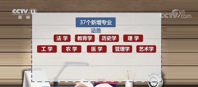 37个新增专业涵盖法学、教育学、历史学、理学、工学、农学、医学、管理学、艺术学9大门类,都是根据国家战略需求和经济社会的发展新设的国家最紧缺专业,其中专业数量占比最多的是工学,其次为农学。