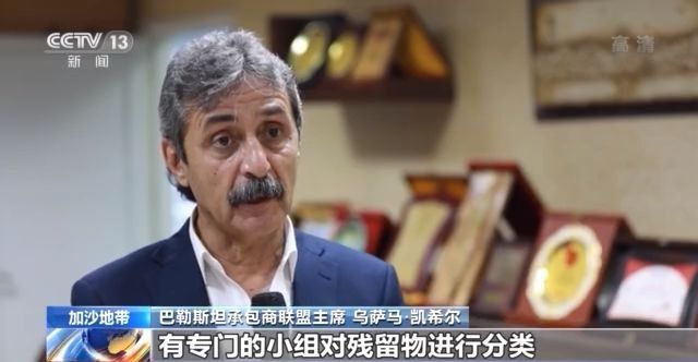 巴勒斯坦承包商联盟主席 乌萨马·凯希尔:在完成检查并确保没有未爆炸的炸药残留后,市政部门会发出招标书,竞标者将负责清除瓦砾,例如清理被摧毁的塔楼。有专门的小组对残留物进行分类,数量最多的残留物是混凝土和铁块,混凝土经破碎机加工后可再次使用,铁块能在轻度受损的建筑修复中使用。