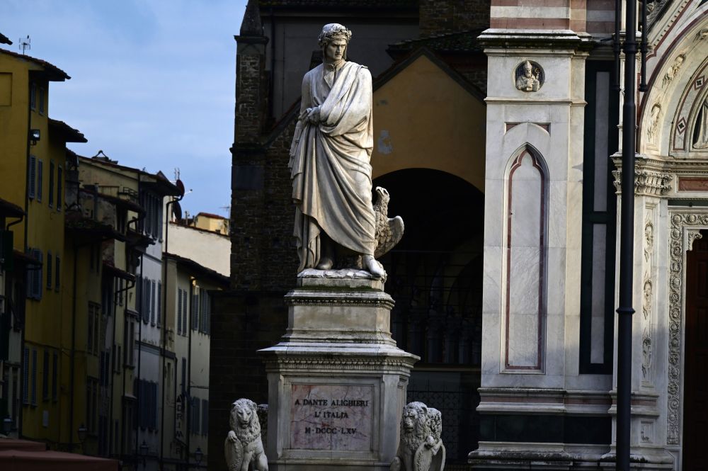 这是2月18日在意大利佛罗伦萨拍摄的但丁雕塑。(新华社发)