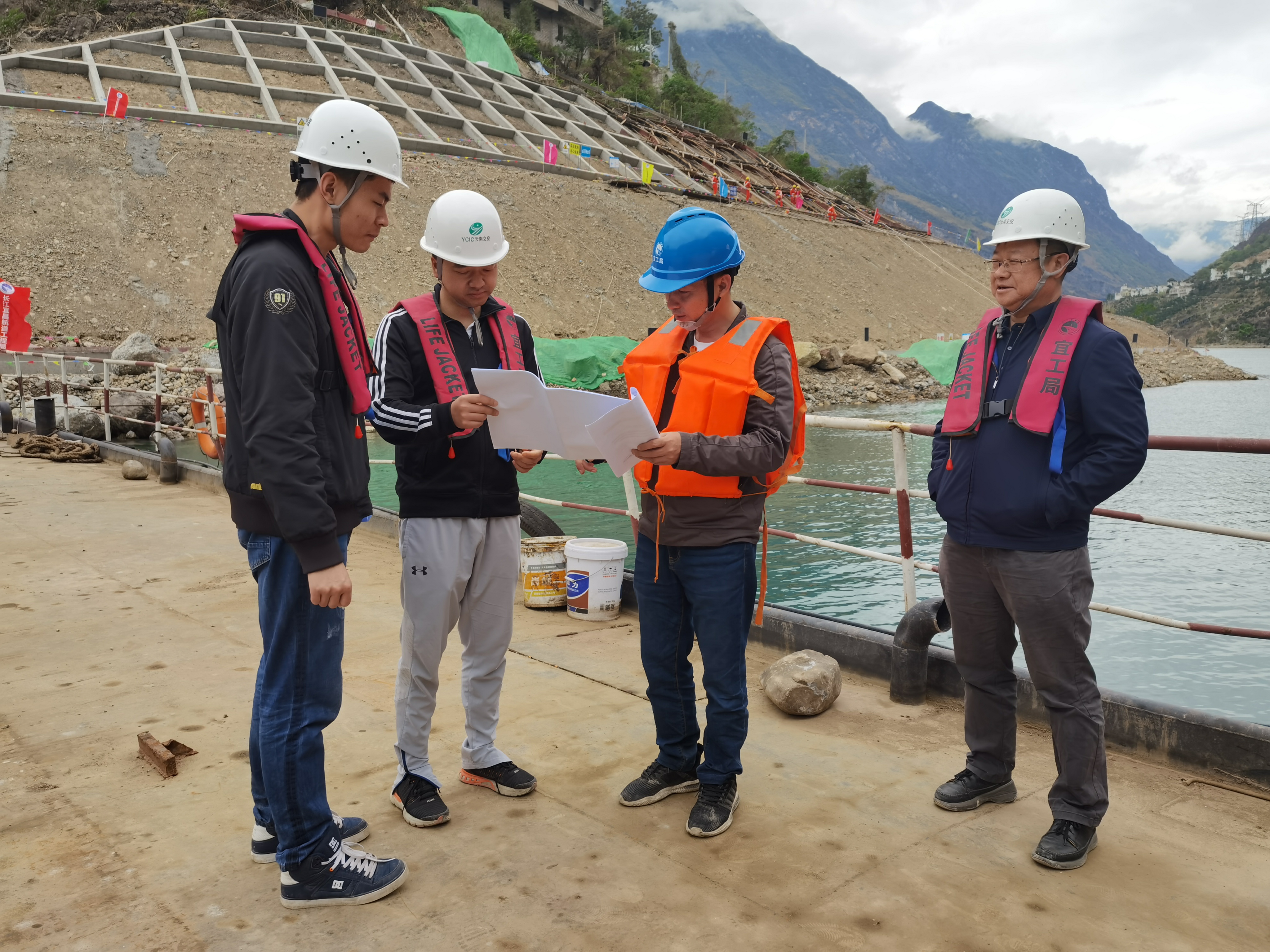 工程师们在黄毛坝滩项目施工现场工作。 新华社记者 宋晨 摄