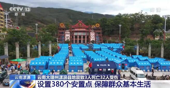 记者在漾濞县城人和广场安置点看到,一顶顶救灾帐篷搭建整齐,居民生活井然有序。目前,当地已成立应急小队,居民房屋排危除险等工作还在进行中。