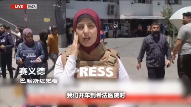 巴勒斯坦记者 赛义德:20分钟前,我们开车到希法医院时,前面10米远的一辆车成为以军导弹瞄准的目标。那辆车被一枚导弹攻击时,距离我的汽车只有几米远。如果那辆车的司机开慢点,我们的车就成了目标了,现在我就死了。