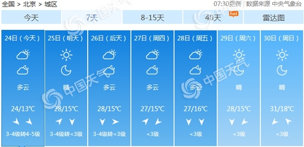 根据预报,本周,北京市仍以晴天为主,白天的最高气温也基本维持在30℃左右,晴晒“控场”,体感上略有些热,公众外出要注意做好防晒和补水工作。