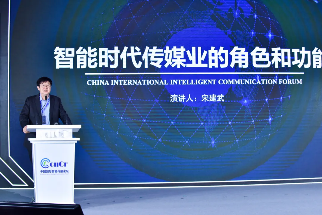 中国人民大学新闻学院教授、中宣部媒体融合专家组成员宋建武在以“‘重塑与构建’智媒时代下的文化产业发展”为主题的“智产业”分论坛上发表演讲。