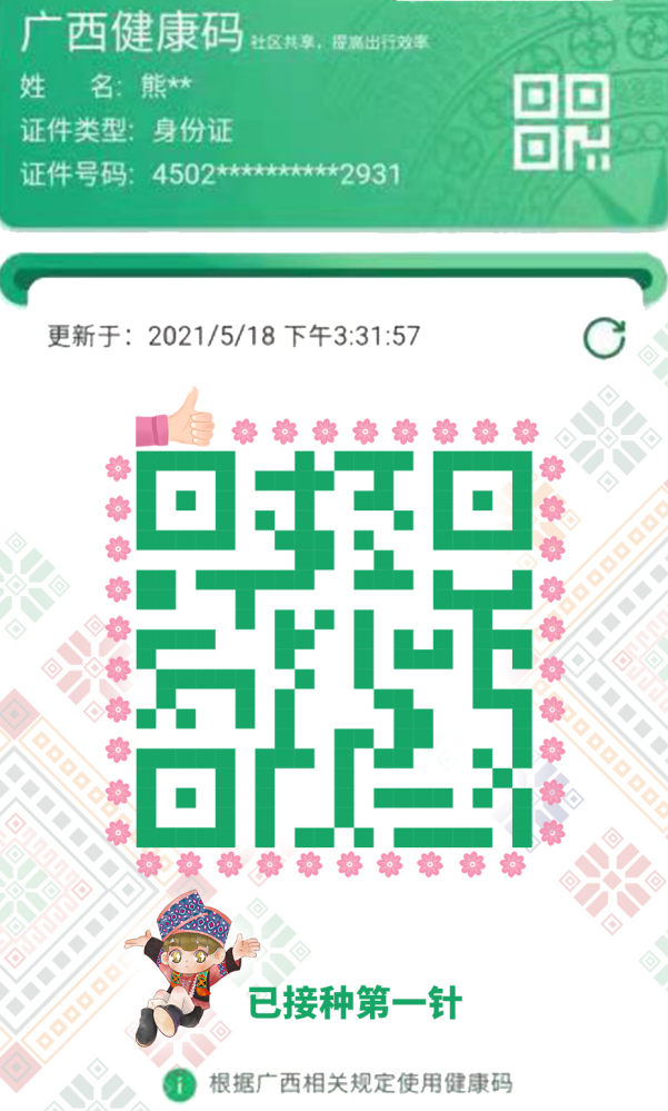 据了解,为贯彻落实国务院关于进一步完善健康码管理有关要求,广西积极推动通过广西健康码与广西免疫规划信息系统疫苗接种数据对接,将疫苗接种情况整合纳入健康码管理,实现一次亮码,多重查询。