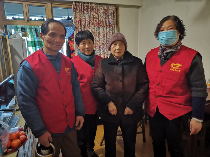 吴慧芬等志愿者看望92岁独居老人,并送饭菜上门