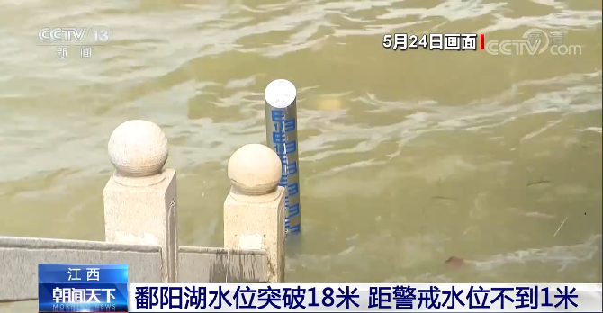 5月24日,江西修河永修站水位、饶河上游干流乐安河虎山站水位超出警戒水位。受此影响,鄱阳湖水位快速上涨,目前距警戒水位不足1米。