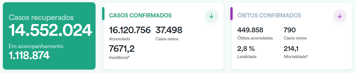 截至当地时间5月24日18时,根据巴西卫生部发布的数据,巴西新冠肺炎确诊病例累计16120756例,较前一日新增37498例;累计死亡病例449858例,较前一日新增790例。