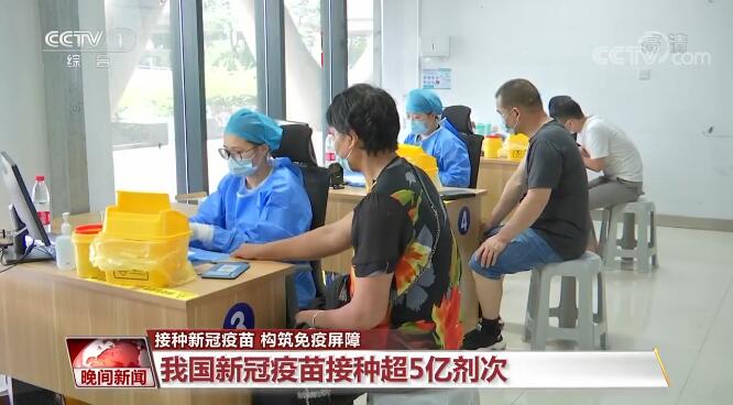 央视网消息:近期,各地群众踊跃接种新冠疫苗,截至5月23日,累计接种超5亿剂次。