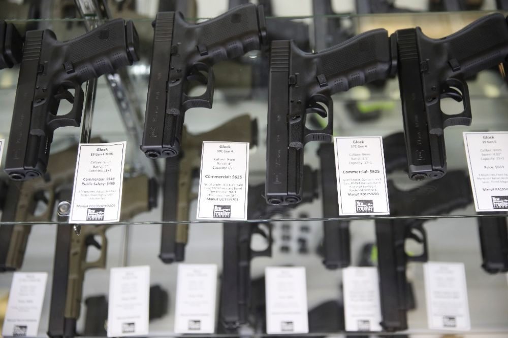 2017年10月4日在美国拉斯维加斯的“新前线”枪械商店拍摄的待售枪支。(新华社记者王迎摄)