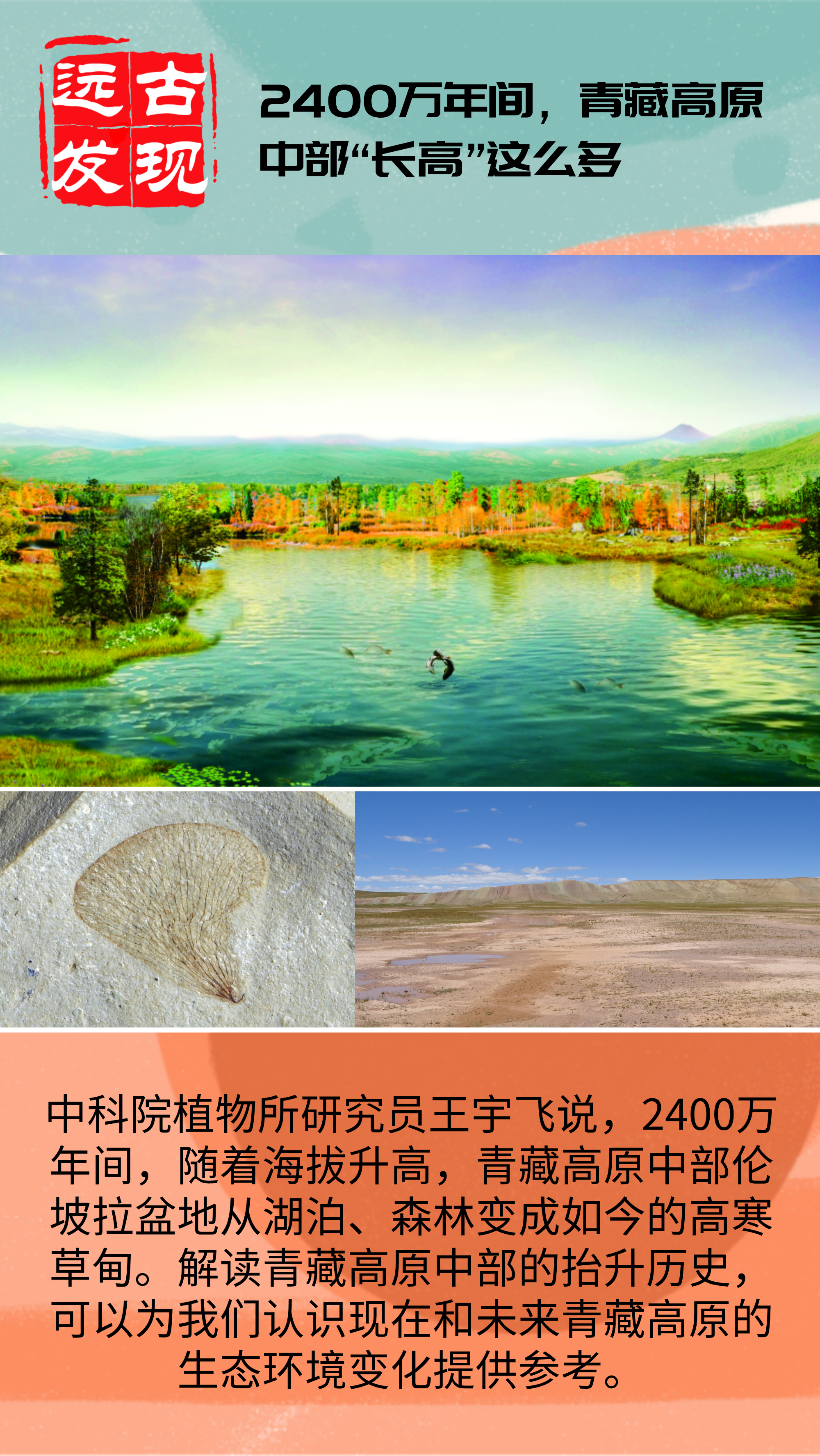 近6500万年间,亚洲地区最重要的地质事件就是青藏高原的隆升。中科院植物所王宇飞团队与中科院古脊椎所、地球环境所相关团队合作,在研究了古、今温度和纬度差异变化的情况下,利用青藏高原中部伦坡拉盆地(现西藏那曲市域内)发现的、约2400万年前的苹属化石,测出了青藏高原中部当时的“身高”。
