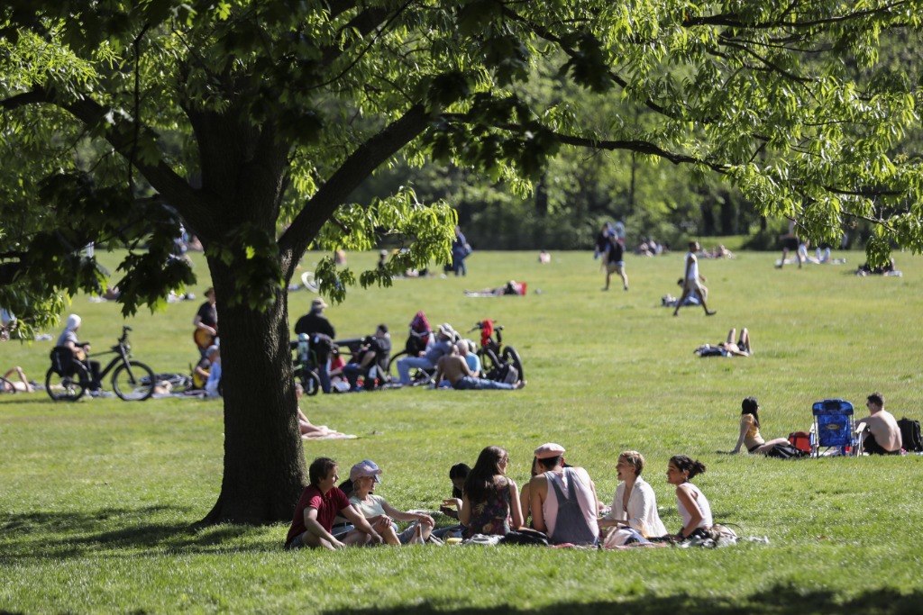 5月14日,人们在美国纽约中央公园休闲。(新华社记者王迎摄)