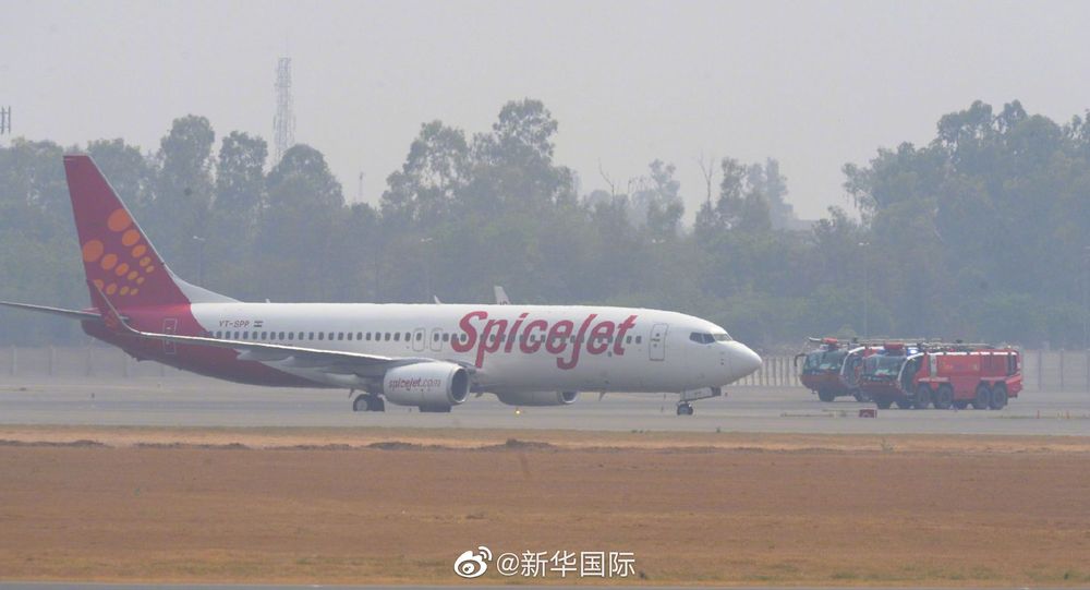 图为2010年5月24日,印度斯派斯航空公司的一架波音737-800客机停靠在印度首都新德里的英迪拉·甘地国际机场。(记者欧飒)