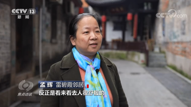 雷碧霞邻居 孟辉:我觉得宽敞漂亮多了,反正是看来看去人很舒服的,对这里充满着遐想。我和我妹妹就想在家里怎么样把它搞好,还想搞一个民宿。
