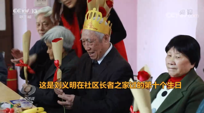 在社区长者之家,社区的志愿者还会举办生日活动。今年是刘义明第十次在社区长者之家过生日。刘义明说:“开心,过得好,过得愉快,社区对我们老年人特别关心。”