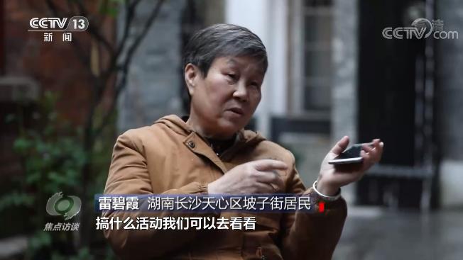 长沙天心区坡子街 居民 雷碧霞:搞什么活动我们随时都可以去看看, 原先还要到河边到哪里去看,现在只要不下雨就在这里,很方便。