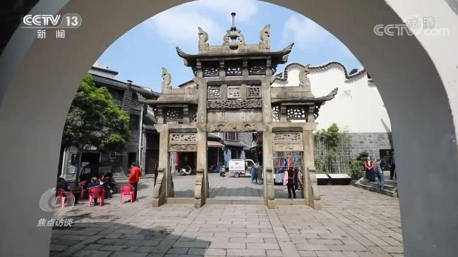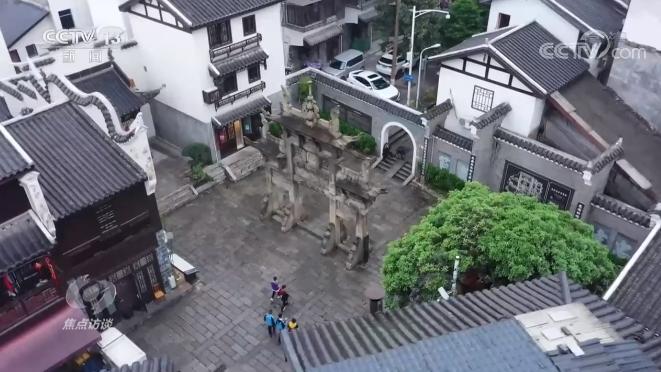 湖南长沙天心区西文庙坪有机更新指挥部副指挥长 彭野战:这边“道冠古今”的牌坊是我们当时从一片棚户区中抢救出来的,当时这个位置就是整个全部被房子已经包围起来了。那么我们把这个腾出来,买了古旧的麻石,把周边能够保留下来的这些东西,把它铺成这个广场,保存下来这个历史遗迹。