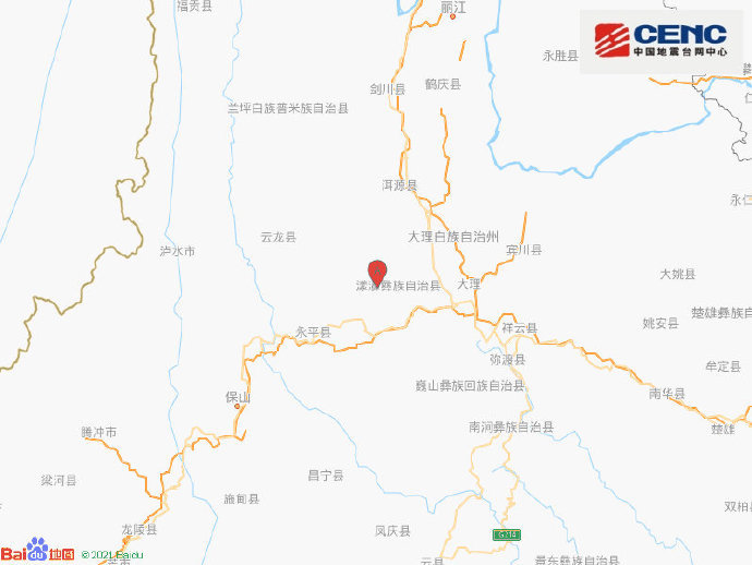 中国地震台网自动测定:05月26日06时37分在云南大理州漾濞县附近(北纬25.69度,东经99.86度)发生3.2级左右地震,最终结果以正式速报为准。