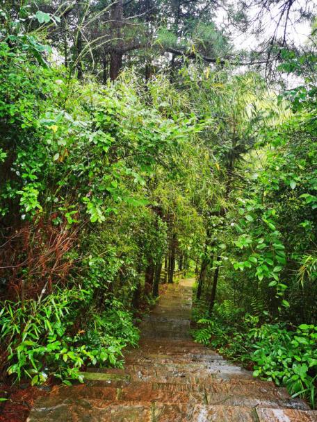 最近的天气多雨,大坡界山的上山路并不好走,湿滑陡峭,布满青苔。但56岁的李明良却走得如履平地,能把许多年轻人都甩在后面,因为在担任讲解员的这些年,他已经把这些路走了无数遍。