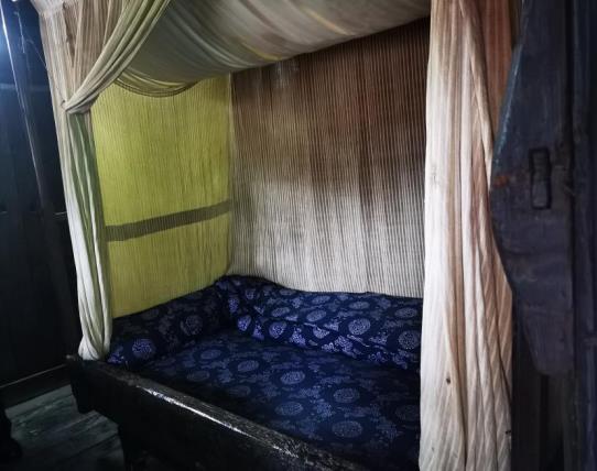 客厅的“品”字形和天井的“一”字形寄托了长辈对后代的期望,屋顶上有一个可以通往密室躲避土匪的密道,餐厅即使是阴天也能很好地采集到自然光,二层粮仓外面有一处“上挡下陷”的机关……提起宅子里的这些巧妙设计,粟泽树讲得流畅又细致,很是吸引人。