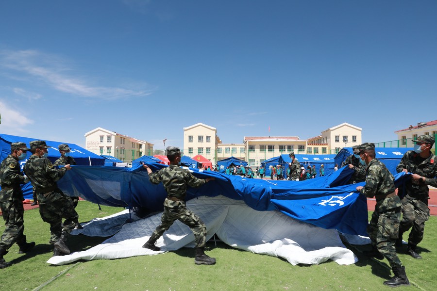 当日上午,救灾帐篷在玛多县政府广场紧急搭建,用于安置受灾群众。让群众在第一时间有饭吃、有衣穿、有地方住,一顶顶蓝色帐篷成为受灾群众温暖的“家”。