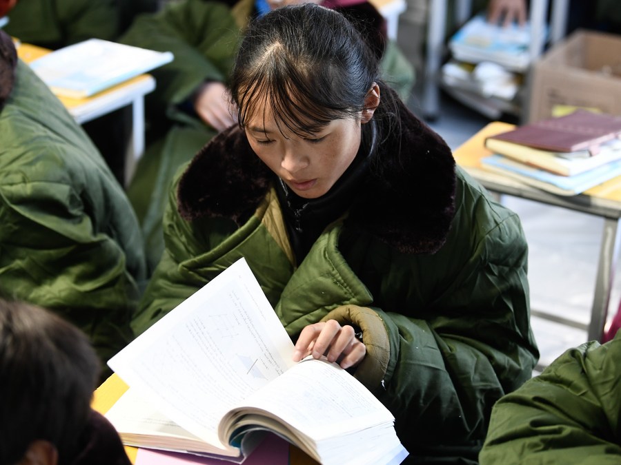5月24日,曲迈卓玛在玛多县民族寄宿制中学帐篷教室里读书。新华社记者 张龙 摄