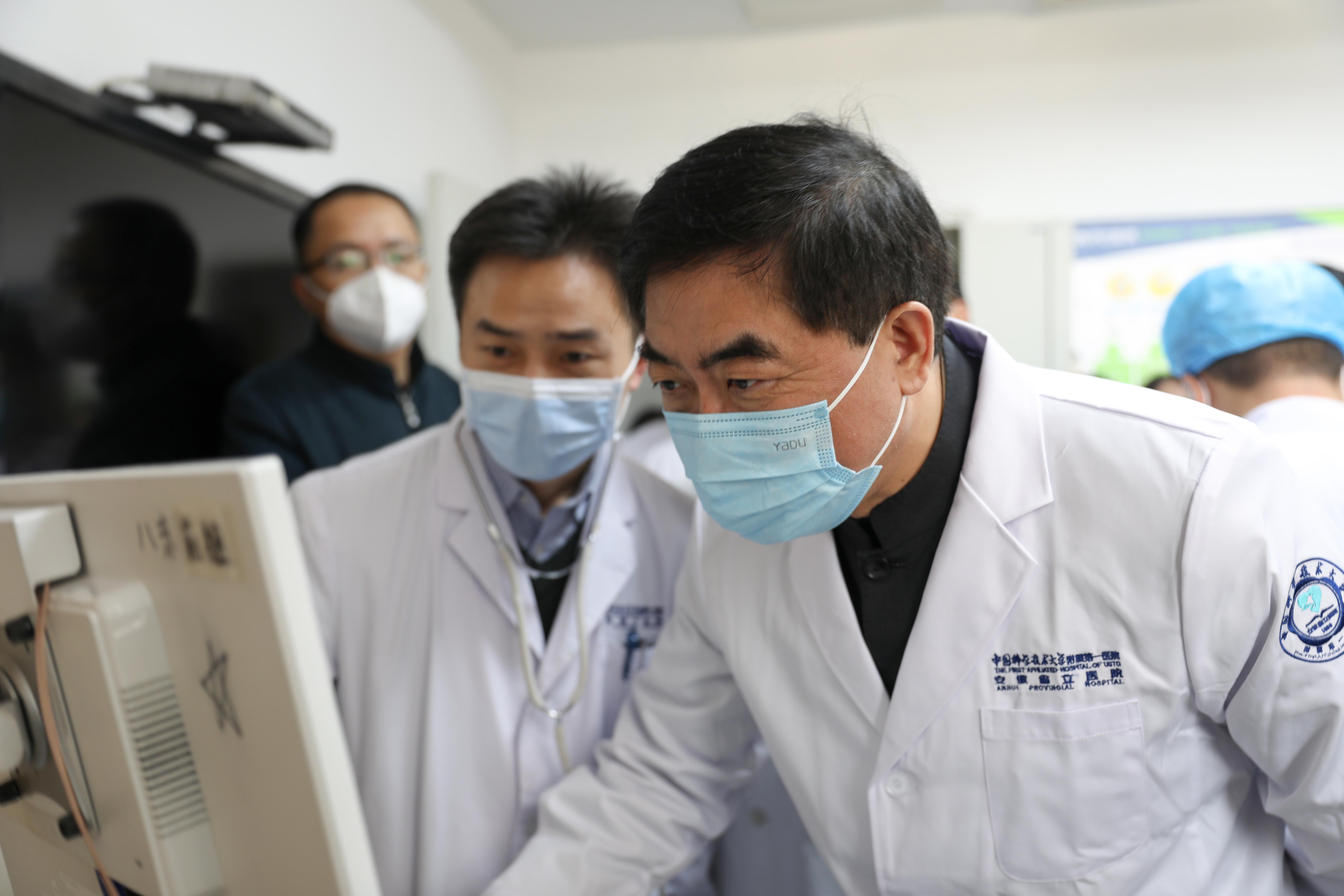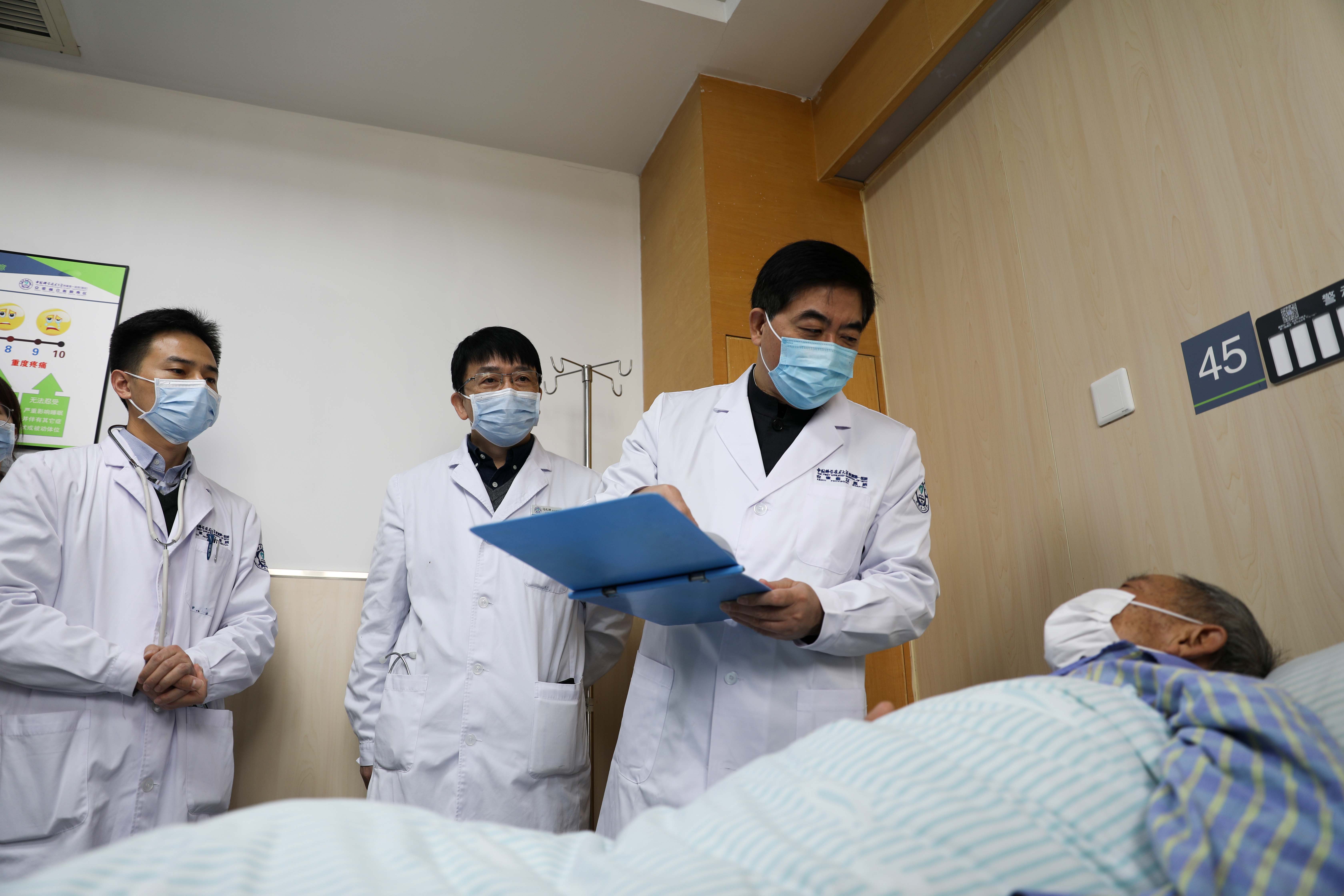 1月11日,在中国科学技术大学附属第一医院(安徽省立医院)心血管内科病房,中科院院士葛均波(前)在了解患者信息。新华社记者 曹力 摄