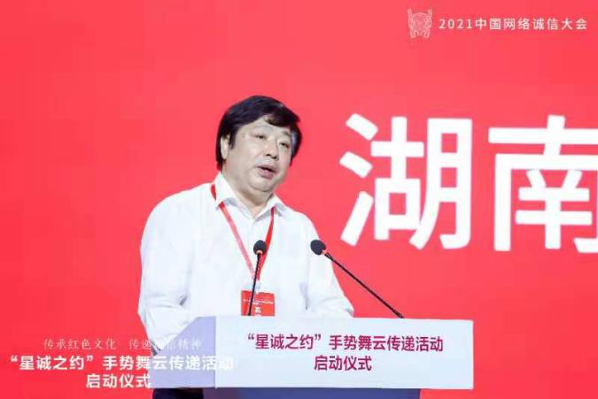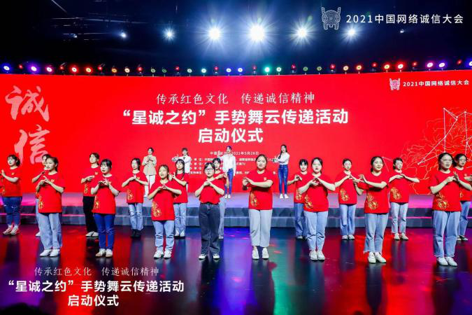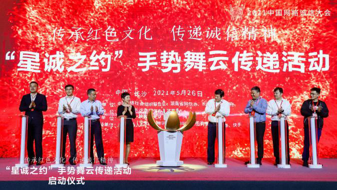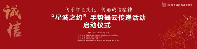 5月26日,由中国网络社会组织联合会、湖南省网信办、长沙市人民政府主办,央视网、长沙市网信办、芒果TV承办,以“传承红色文化 传递诚信精神”为主题的2021中国网络诚信大会“星诚之约”手势舞云传递活动启动仪式在湖南长沙举行。