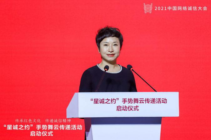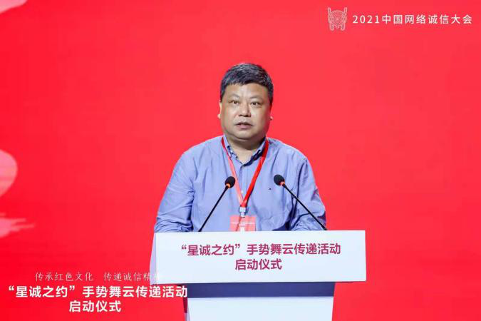 致辞中,赵晖表示,举办中国网络诚信大会是为更好地加强互联网行业自律、推进网络诚信建设、营造诚实守信的良好社会氛围。此次以“星诚之约”手势舞云传递活动为开端,拉开2021中国网络诚信大会的帷幕,用网络诚信为中国互联网的蓬勃发展贡献力量。