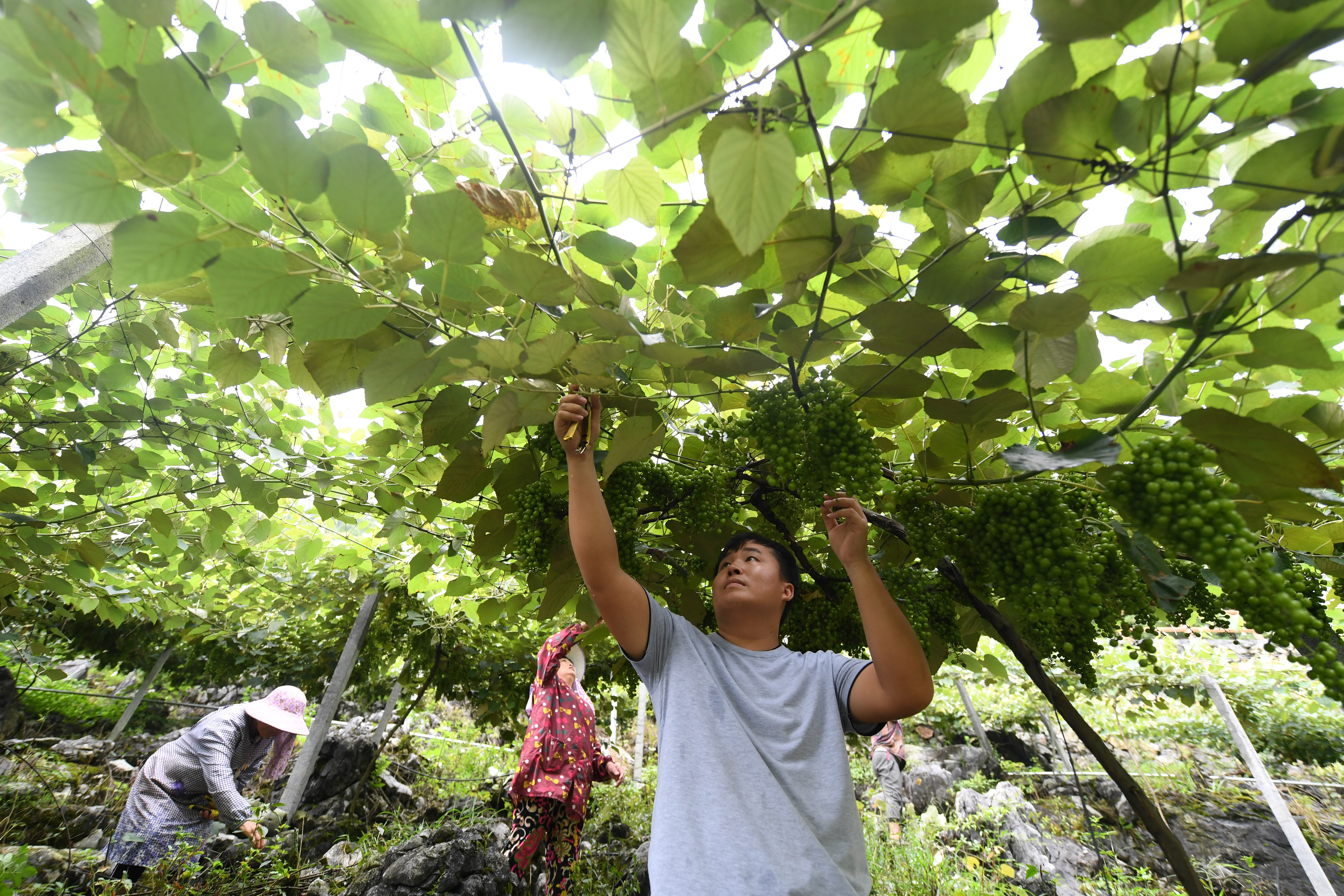 “过去这里都是光秃秃的,毛葡萄根系发达,生命力强,在石头缝里生长,一株甚至可覆盖1亩石山,能有效防止水土流失。”蓝钧说,通过毛葡萄种植销售,他每年收入数十万元。