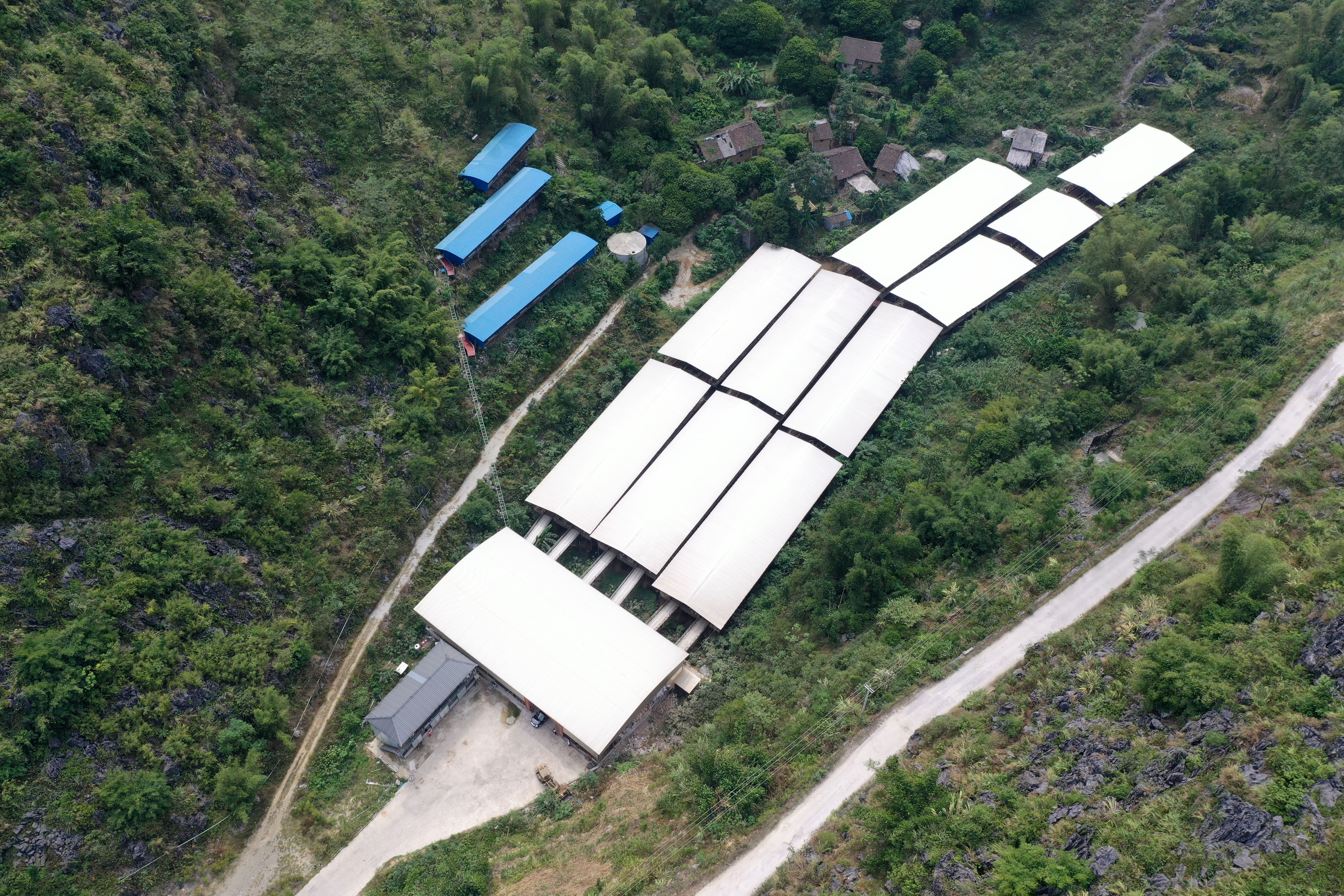 广西都安瑶族自治县三只羊乡一家澳寒羊养殖基地(无人机照片,2019年10月16日摄)。新华社记者陆波岸摄