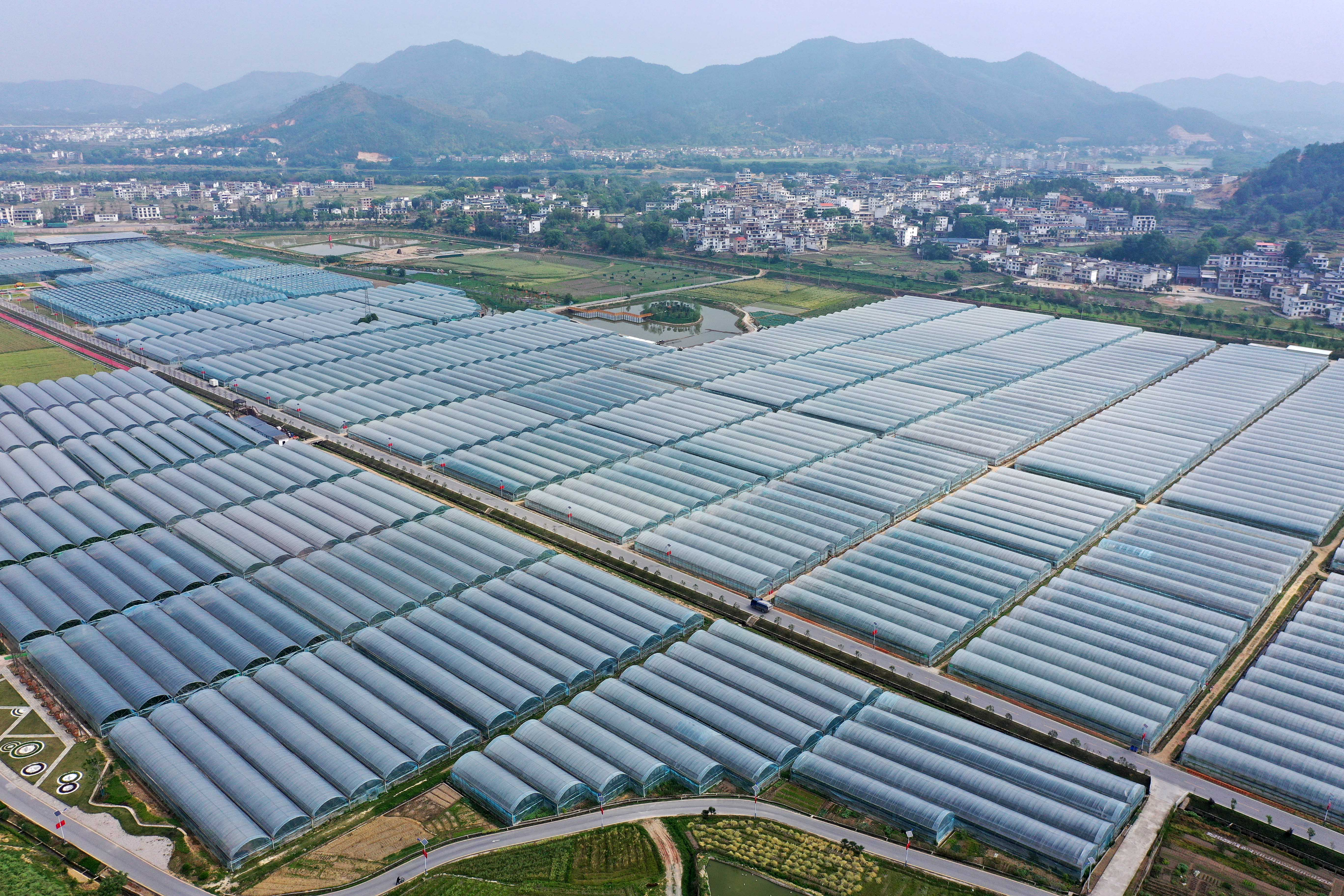 这是位于江西省于都县潭头村的蔬菜种植基地。(无人机照片)新华社记者 彭昭之 摄