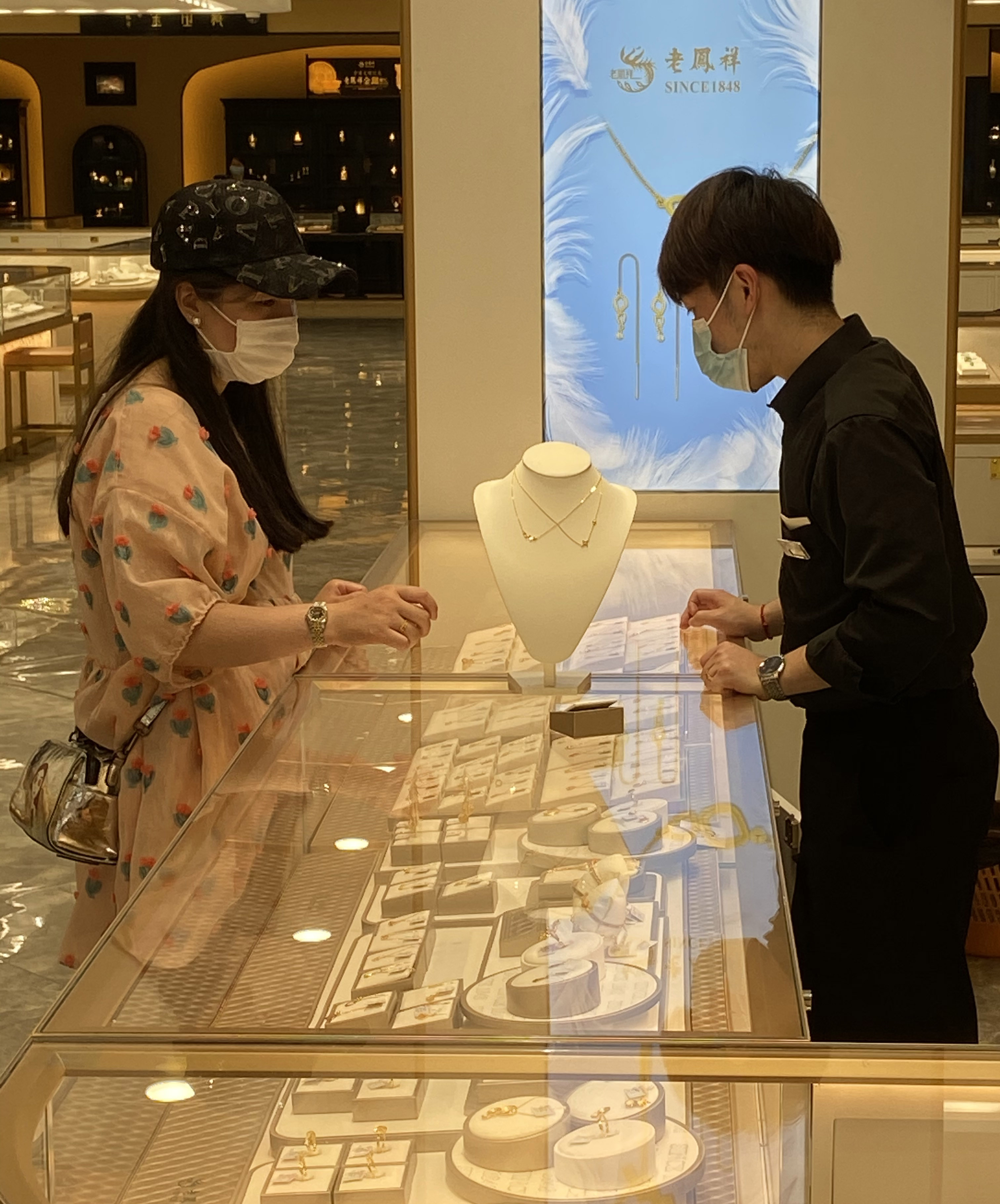 消费者在上海老凤祥银楼选购黄金饰品。(受访者供图)