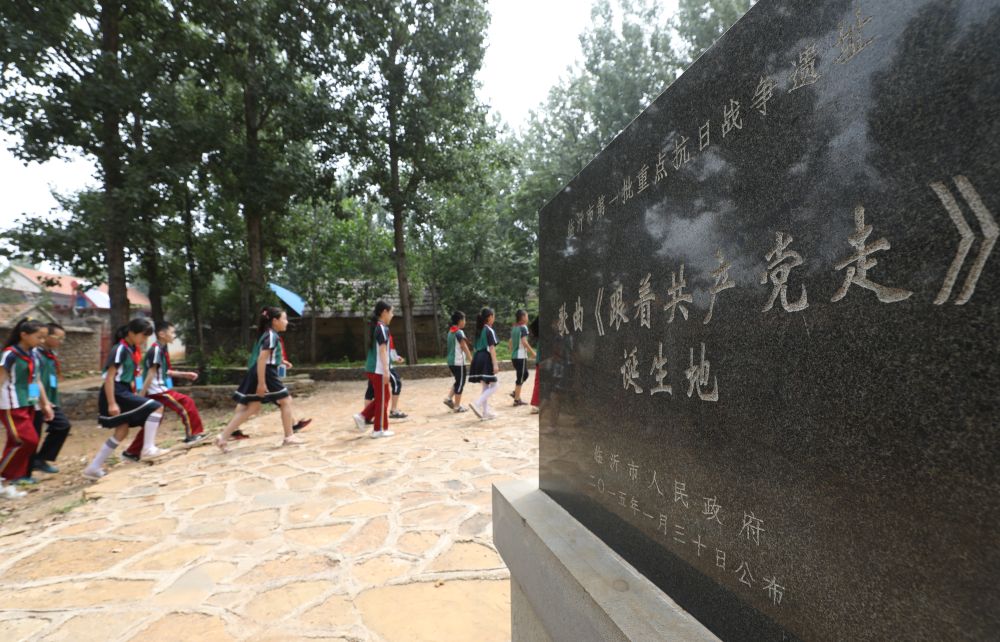 “大家看到的花岗岩石纪念碑,就是为纪念在这里诞生的歌曲《跟着共产党走》。这首歌曲调流畅、慷慨激昂、热情奔放,1940年由沙洪和王久鸣创作。”日前,记者在山东沂南县孙祖镇东高庄村采访时,遇见了正在给学生们讲解的沂南县党史研究中心编辑徐庆芳。他说,这首经典的红色歌曲,创作只用了20分钟。