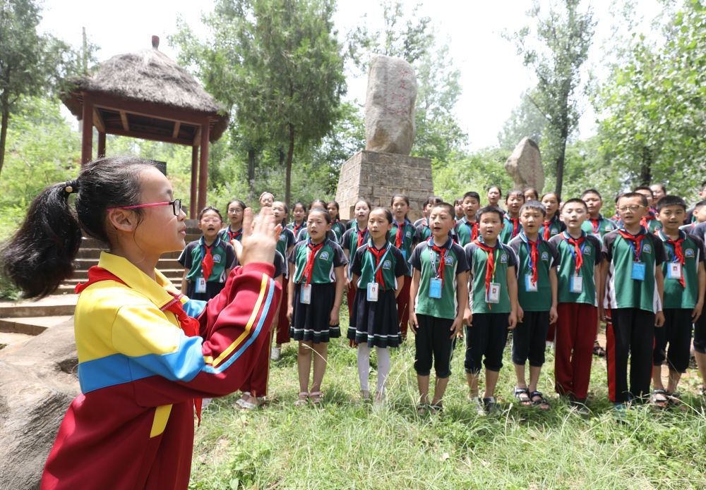 2020年6月28日,当地学生来红色歌曲《跟着共产党走》诞生地参观学习。(新华社发)