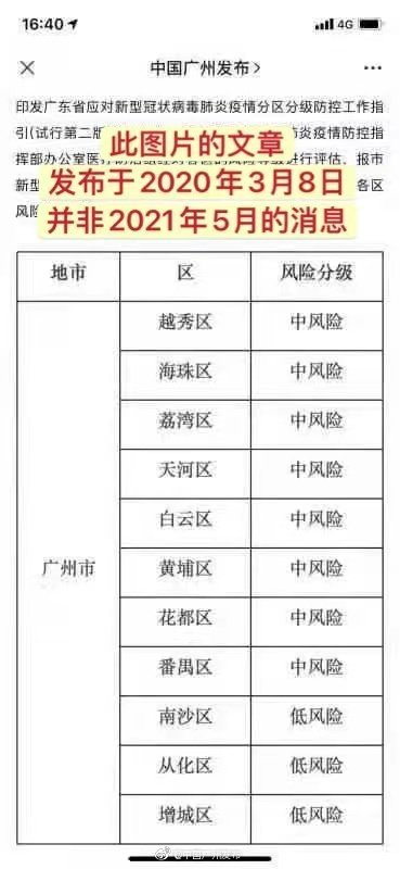 近期,这张发自2020年3月8日的文章截图开始流传,不少读者误认为是近期的风险等级。各位街坊注意,这并非是2021年5月的消息,请注意辨别。不信谣,不传谣!