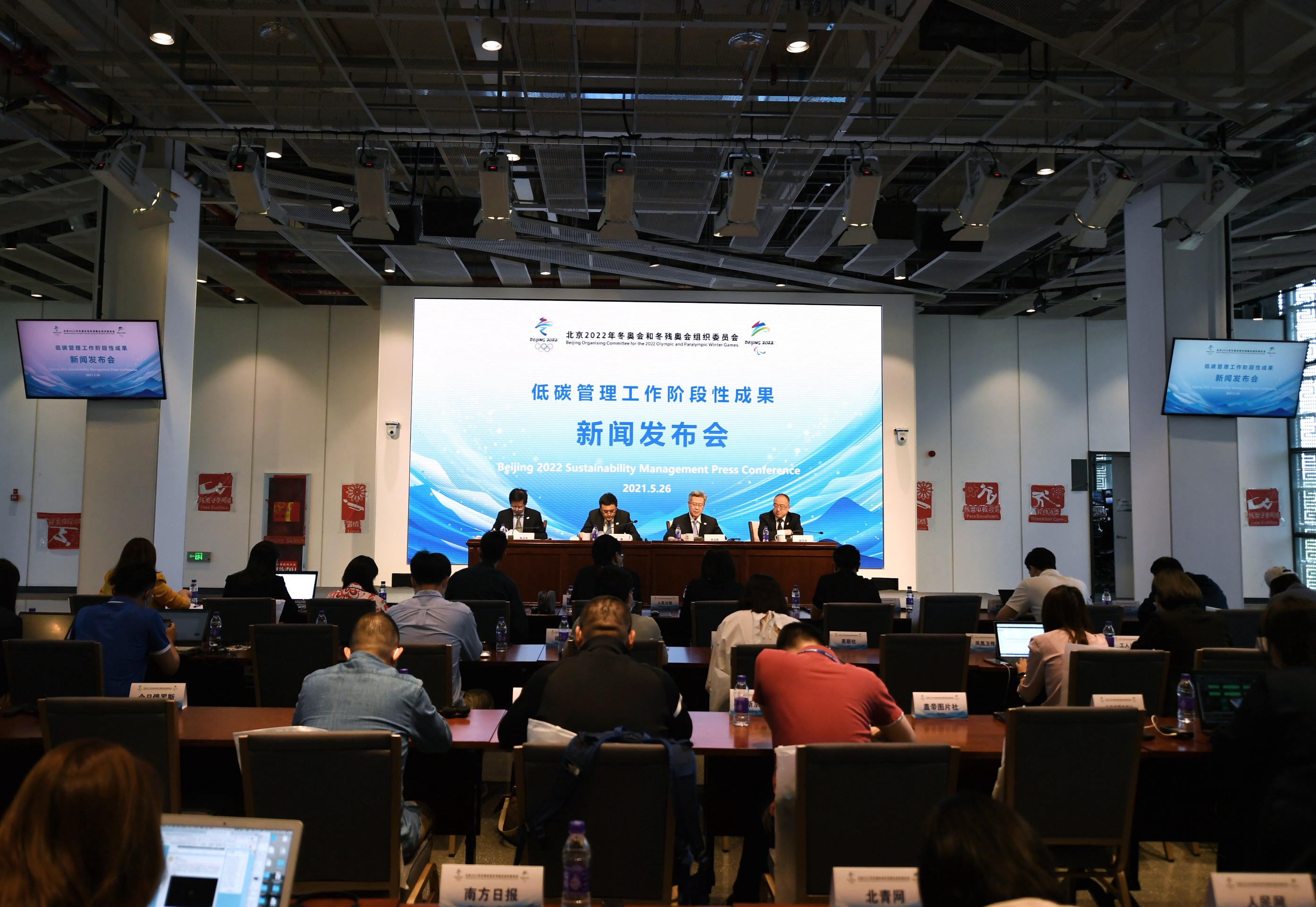 5月26日,北京冬奥组委围绕低碳冬奥主题召开新闻发布会,对低碳场馆建设、低碳能源应用、清洁能源车辆应用等工作内容进行介绍。新华社记者张晨霖摄