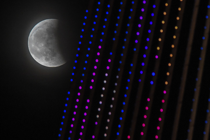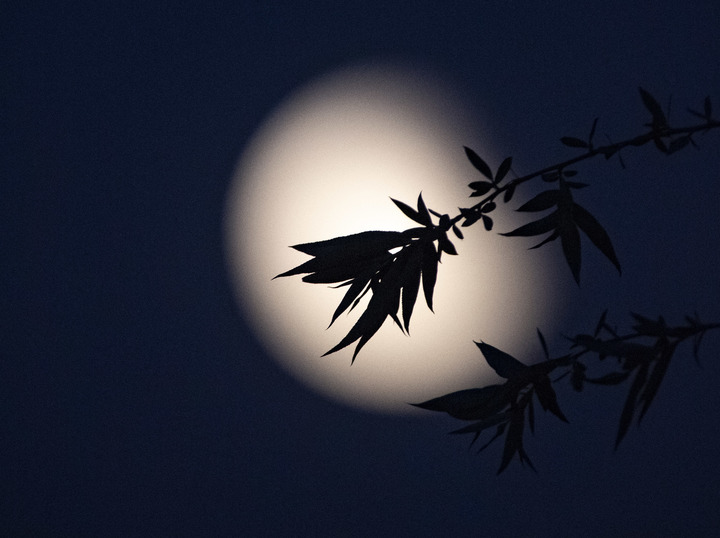 ↑这是在宁夏银川市阅海国家湿地公园拍摄的“超级月全食”照片。(新华社记者冯开华5月26日摄)
