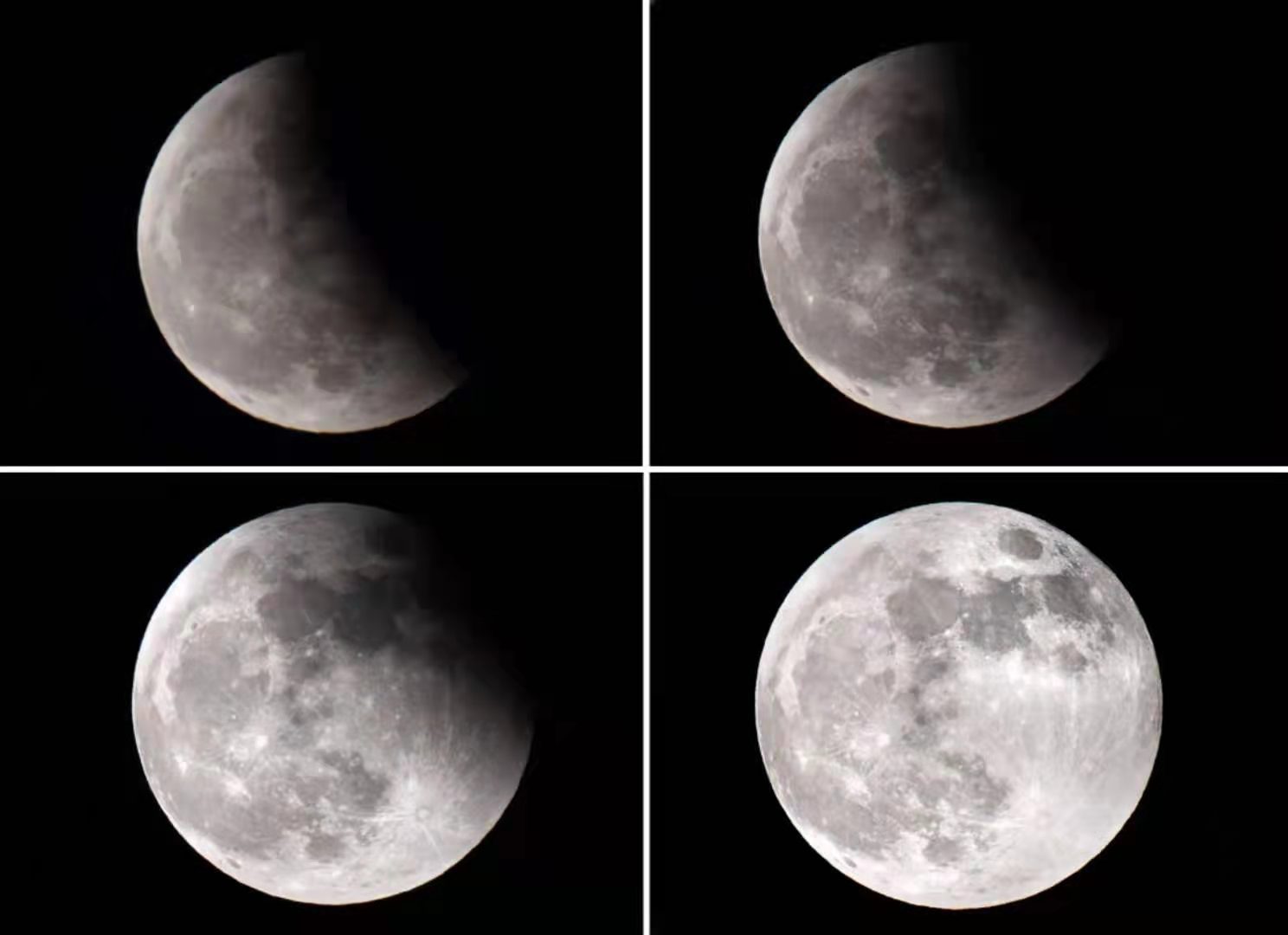 除了北京和天津外,我国吉林、山西、山东、宁夏等地的公众也都观赏了月圆月缺的美妙景色。