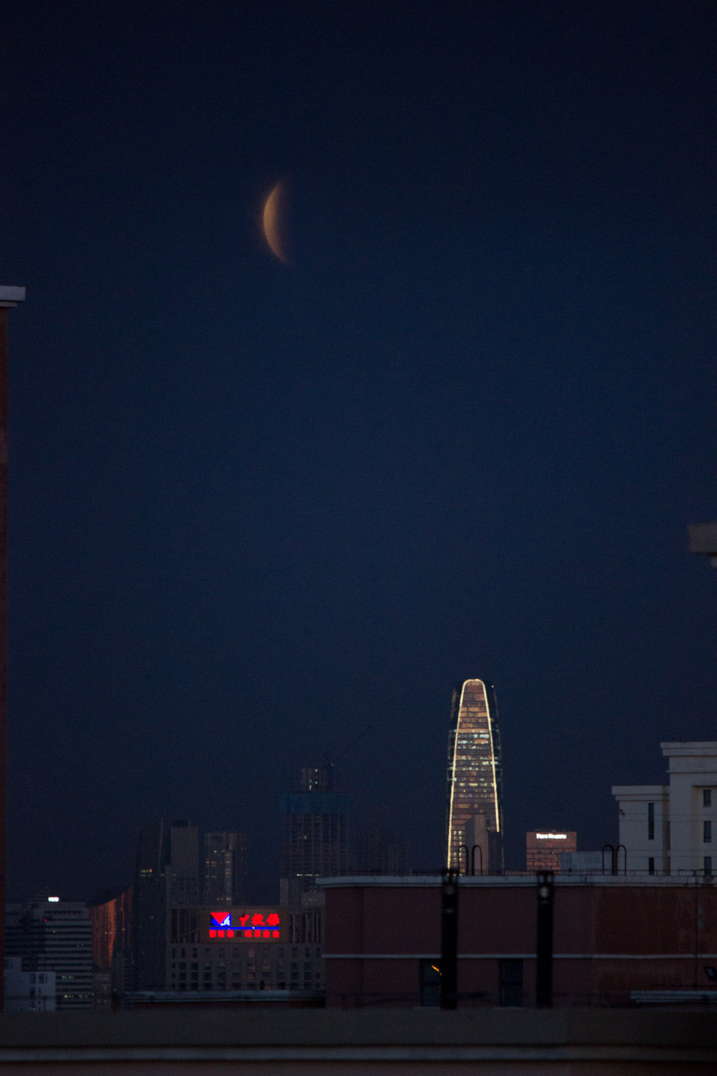 “天津的月出时间是19时22分,刚好是‘红月亮’阶段,但月亮此时刚升出地平线,再加上有云层干扰,没能看到全食阶段,只看到了一定程度的月偏食。‘超级月亮’少了一角,真的就像被‘天狗咬掉一小块’,也是很难得的画面。”马强说。
